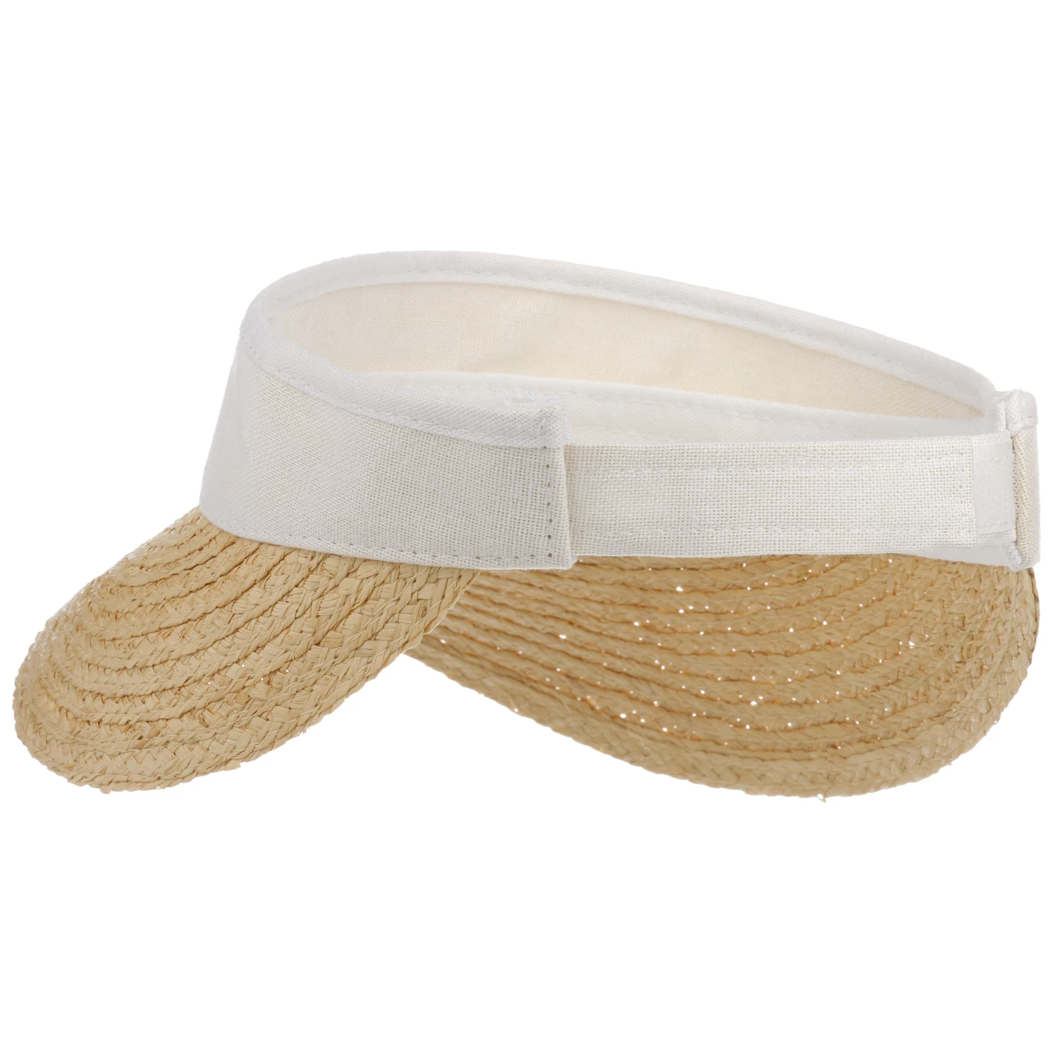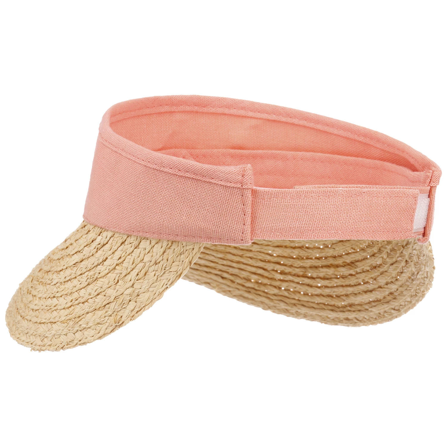 Baumwolle legt sich um den Kopf und findet per Klettverschluss am Hinterkopf passgenauen Halt. Vorne sitzt der aus geflochtenen Raffiastrohborten gefertigte Schirm, der bis zur Nasenspitze ein Schattenplätzchen verschafft. Derweil darf jederzeit ein sommerlicher Lufthauch das Haar umspielen, damit der Kopf bei Freizeitaktivitäten und beim Sport nicht so sehr ins Schwitzen kommt.