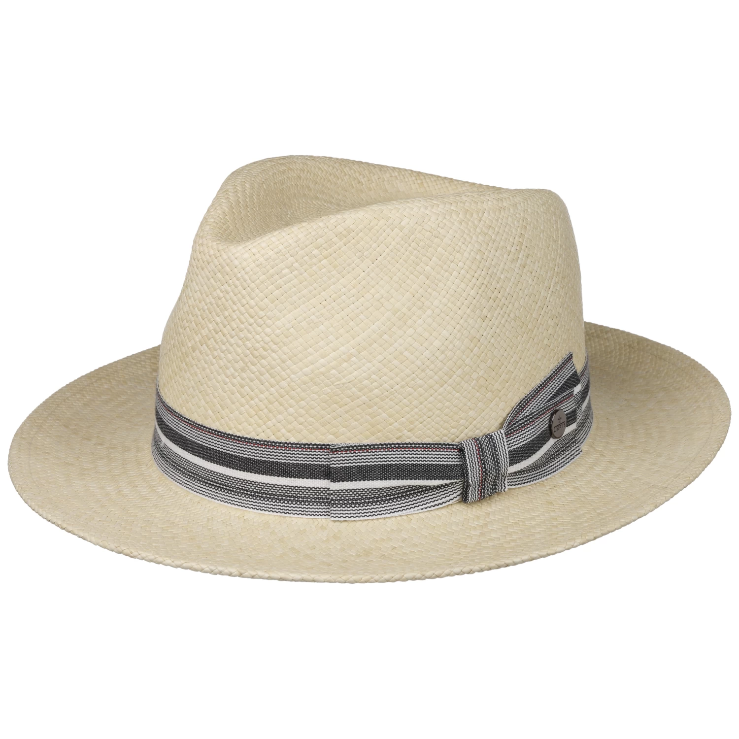 100% Panamastroh verleihen dem Hut einen hochwertigen und eleganten Charakter und sorgen für luftig leichten Tragekomfort. Die breite Krempe spendet wohltuenden Schatten beim gesellschaftlichen Event unter freiem Himmel.