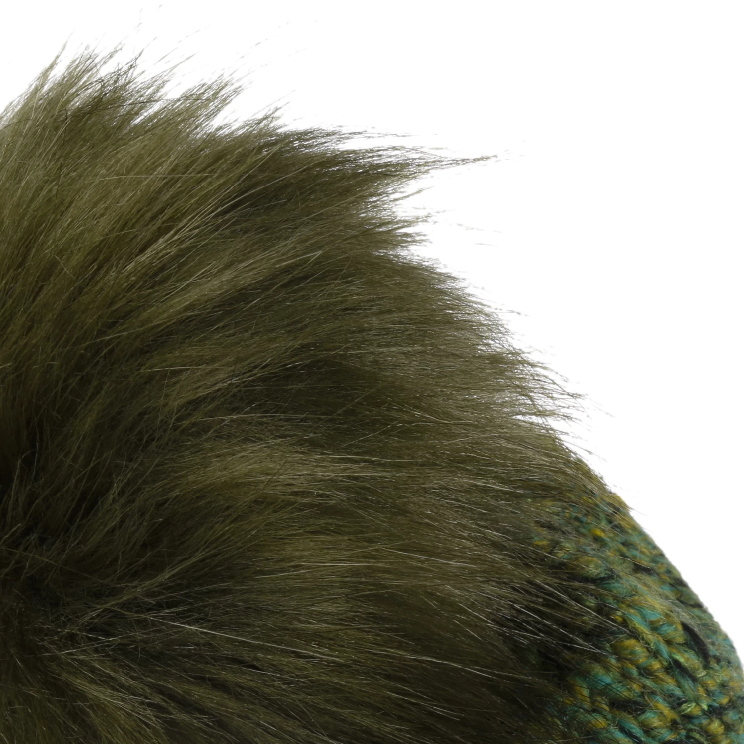 Der winterwarme Komfort ist auf einen großzügigen Anteil Wolle und die Beigabe flauschweichen Alpakafasern zurückzuführen, was sich optisch in gemütlichem Strick mit melierten Farbtupfern sowie einem ultraflauschigen Pompon aus Kunstfell obenauf spiegelt, der das Oversizeformat gekonnt in Szene setzt. Im Ohrenbereich sorgt Fleecefutter für einen behaglichen Wärmeschub.
