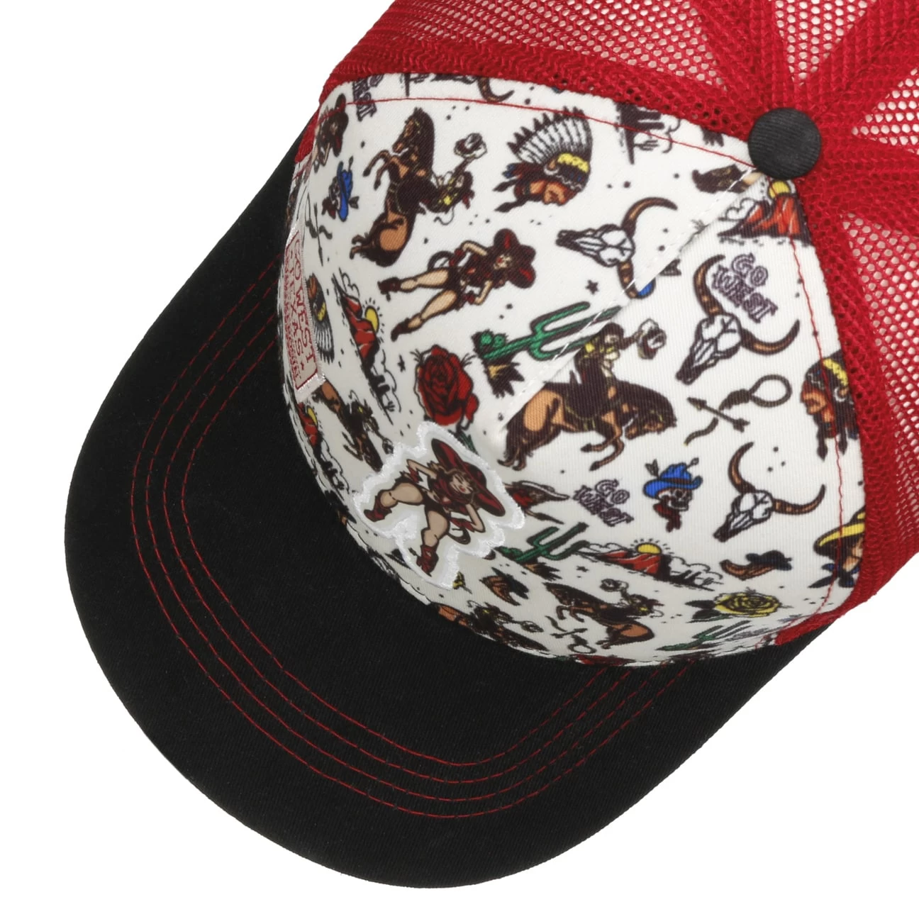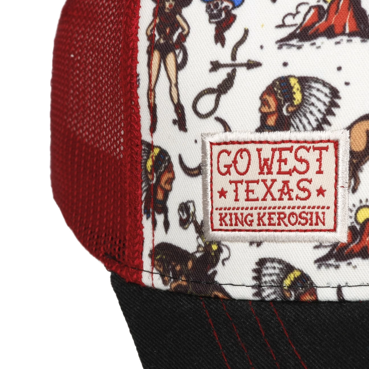 Das hervorstechende Merkmal der Wild Wild West Trucker Cap aus dem Hause King Kerosin ist das luftige Netzteil am Hinterkopf, das für eine allzeit gute Durchlüftung sorgt.